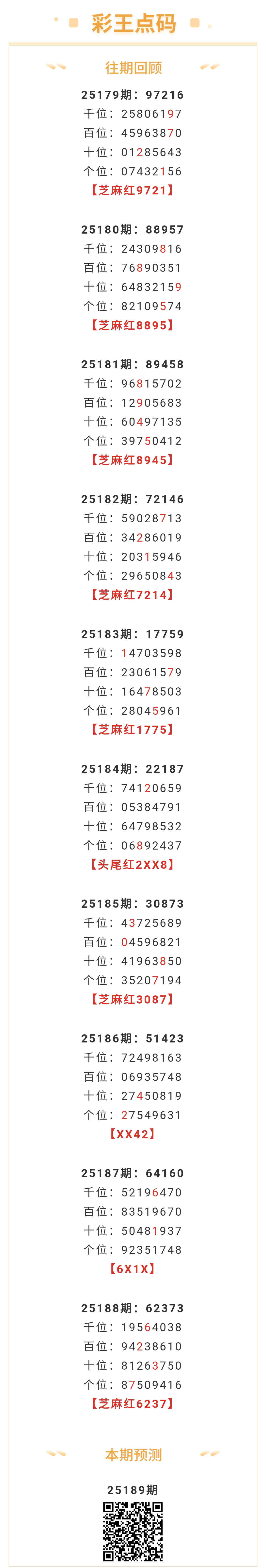 【排列五-25189期】本月圈红9次芝麻,芝麻近10红7;上期芝麻红6237