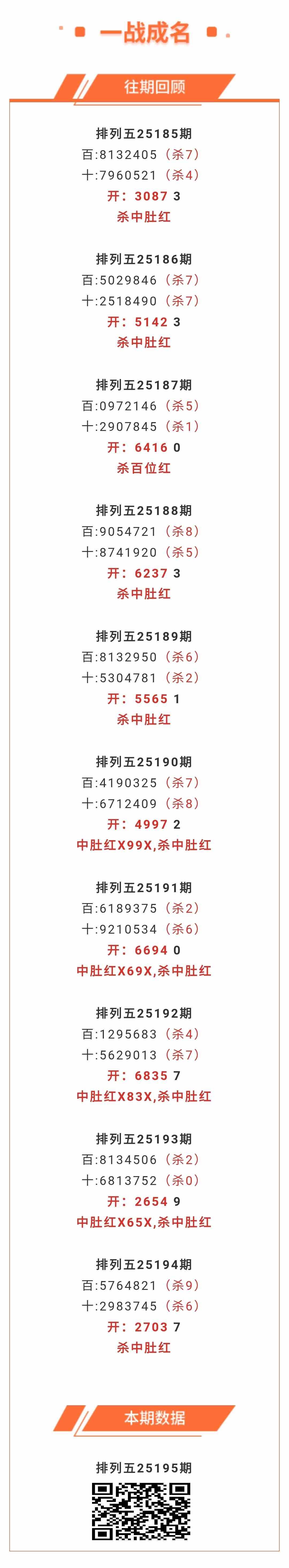 【排列五-25195期】本月圈红10次中肚,中肚近10红4;上期杀中肚红
