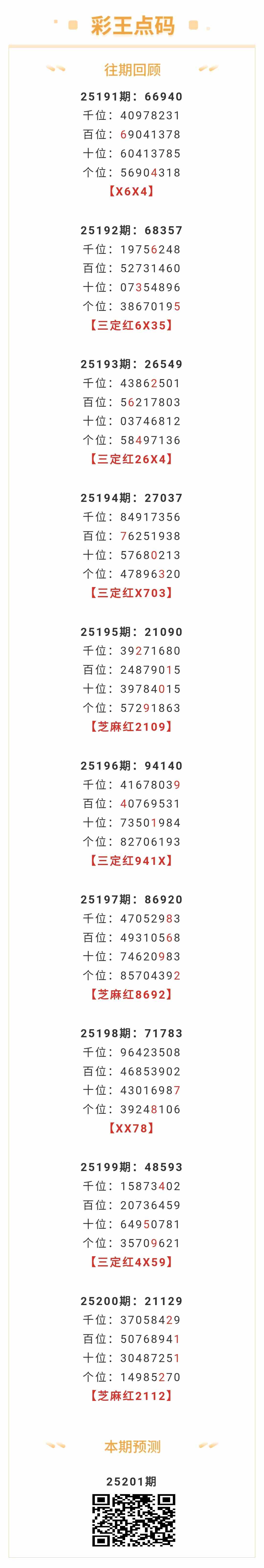 【排列五-25201期】本月圈红13次芝麻,芝麻近10红3;上期芝麻红2112