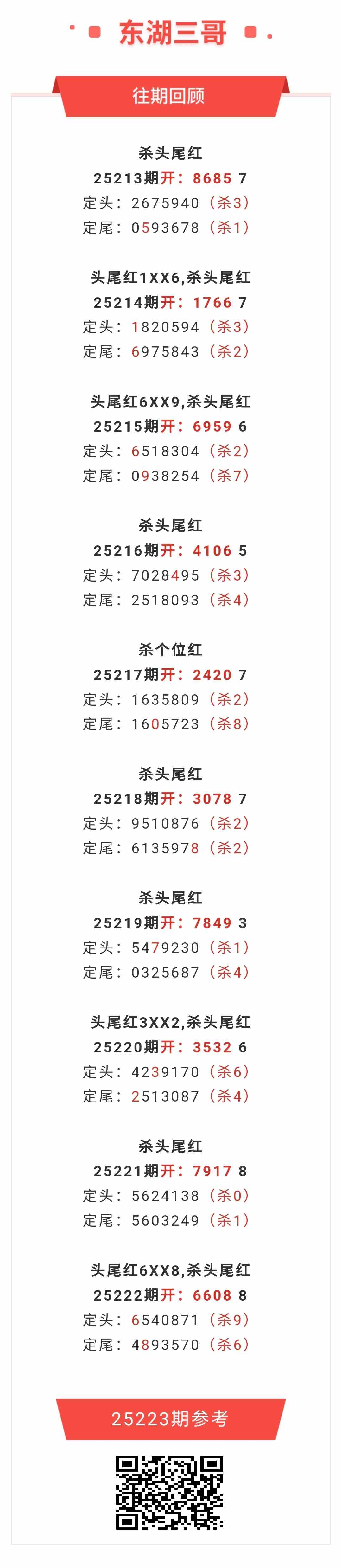 【排列五-25223期】本月圈红11次一四,一四近10红4;上期一四红6XX8,杀一四红