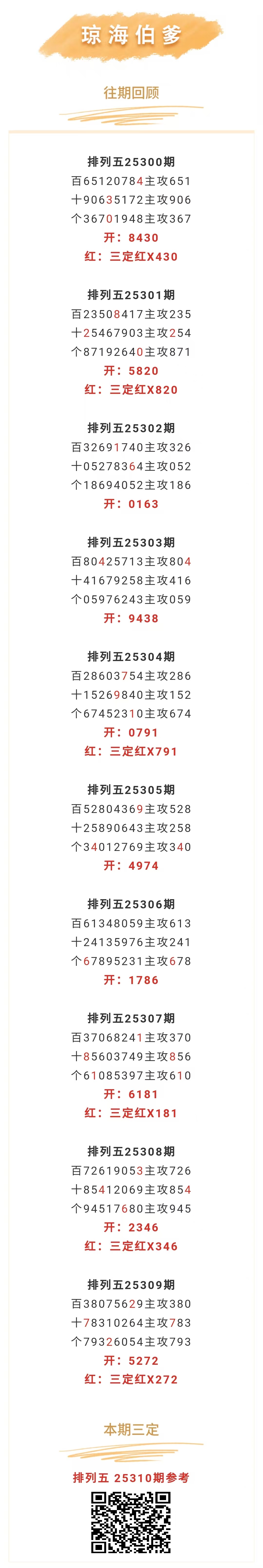 【排列五-25310期】三定3连红,本月圈红12次三定,三定近10红6;上期三定红X272