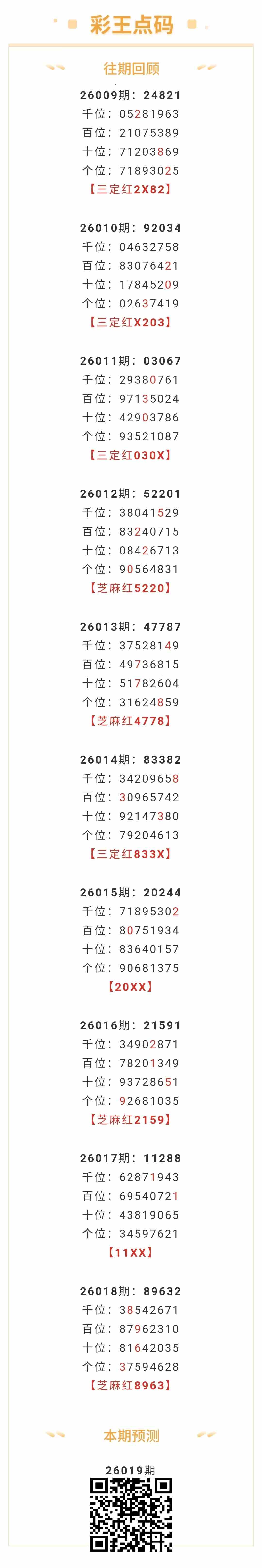 【排列五-26019期】本月圈红6次芝麻,芝麻近10红4;上期芝麻红8963