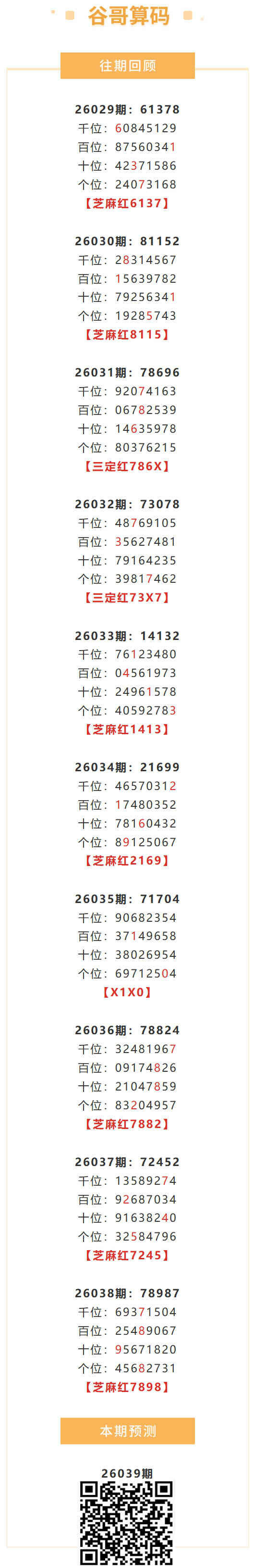 【排列五-26039期】芝麻3连红!本月圈红5次芝麻,芝麻近10红7;上期芝麻红7898