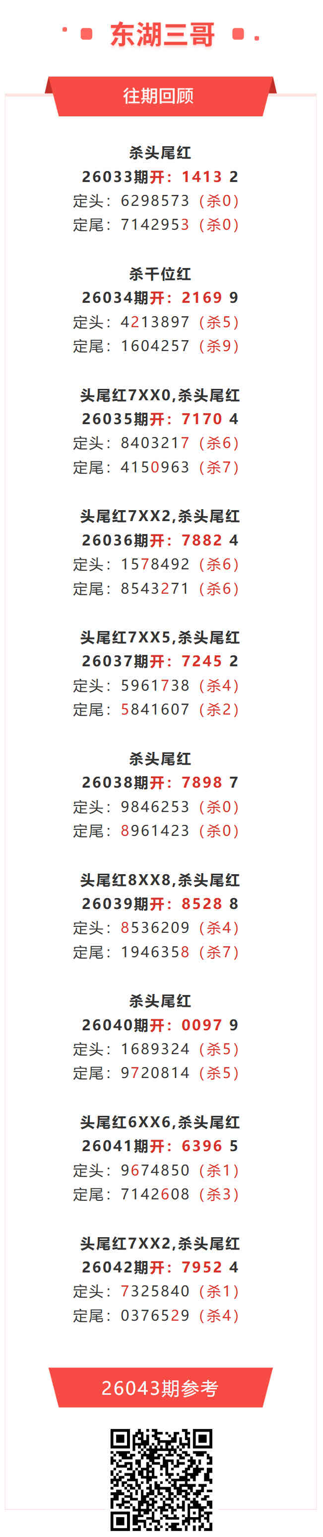 【排列五-26043期】杀一四8连红!本月圈红6次一四,一四近10红6;上期一四红7XX2,杀一四