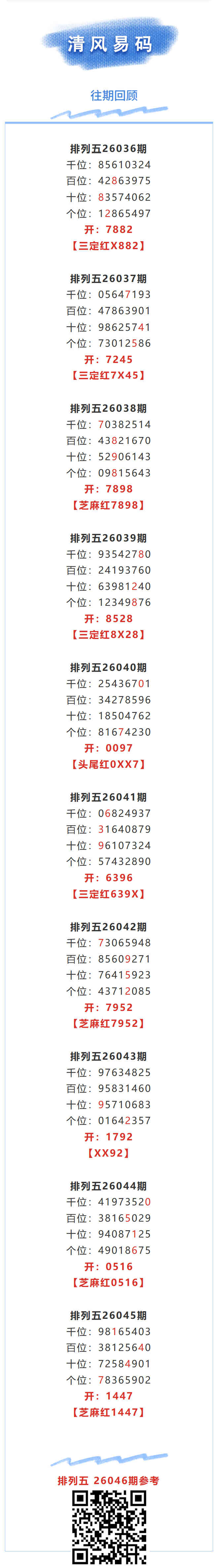【排列五-26046期】芝麻2连红!本月圈红5次芝麻,芝麻近10红4;上期芝麻红1447