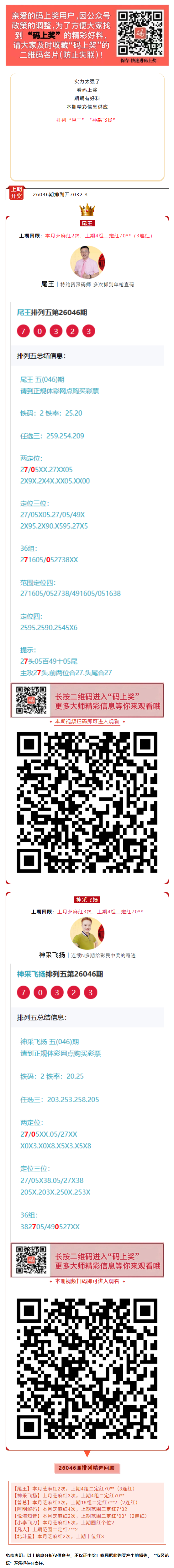 【码上奖】排列“尾王”本月芝麻红2次,上期4组二定红70**(3连红)!