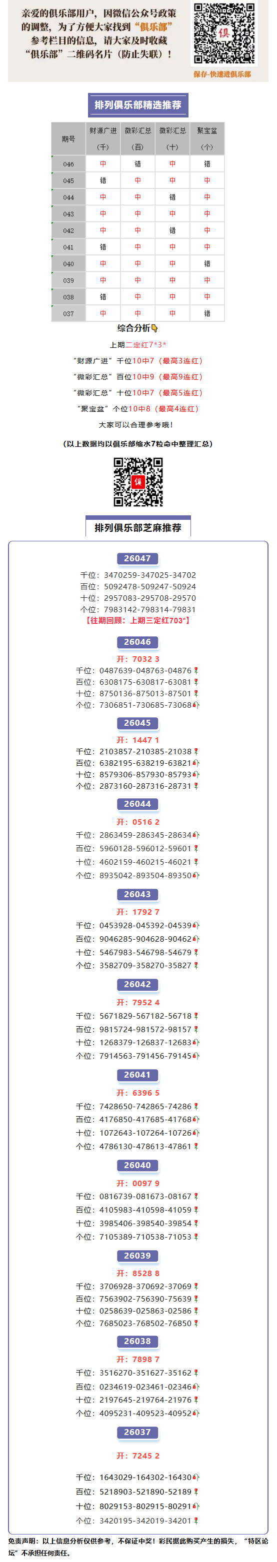 【特区俱乐部】加油!排列“芝麻推荐”三定红703*!