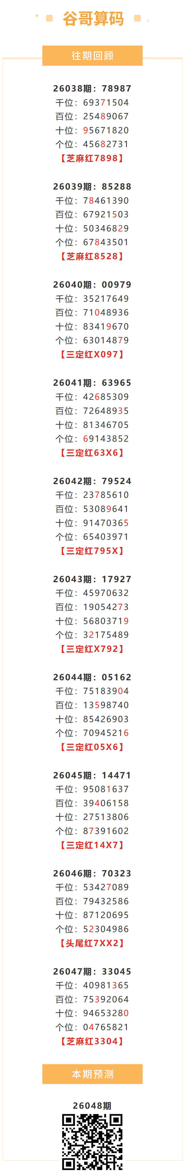 【排列五-26048期】本月圈红7次芝麻,芝麻近10红3;上期芝麻红3304