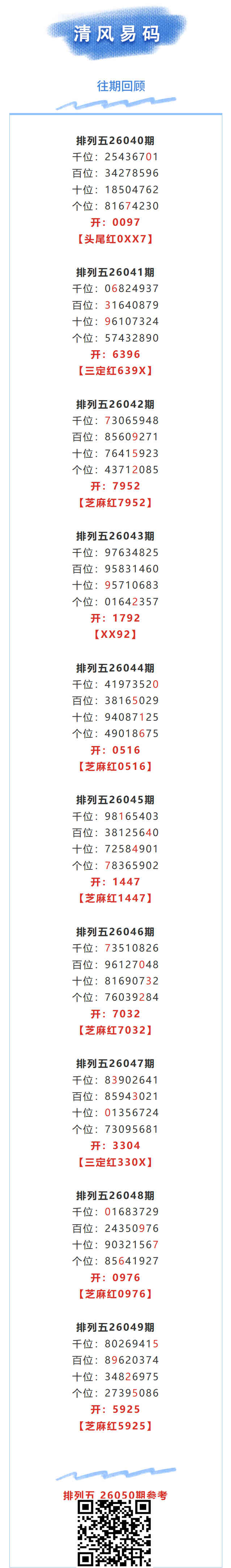 【排列五-26050期】芝麻2连红!上月圈红8次芝麻,芝麻近10红6;上期芝麻红5925