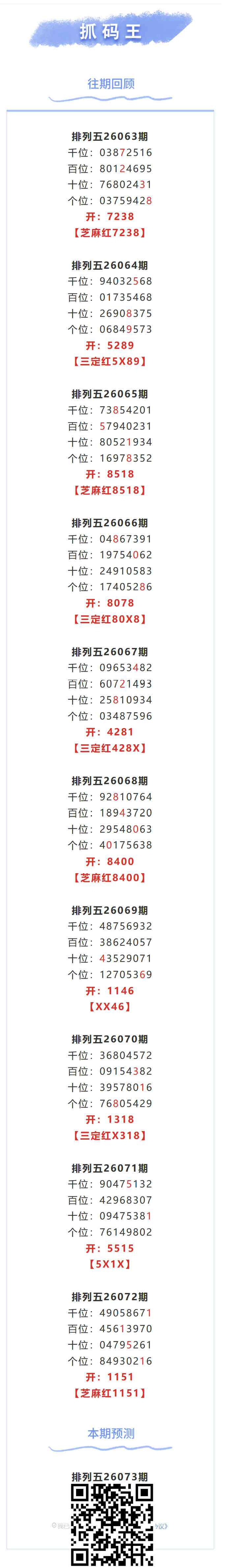 【排列五-26073期】本月圈红10次芝麻,芝麻近10红4;上期芝麻红1151