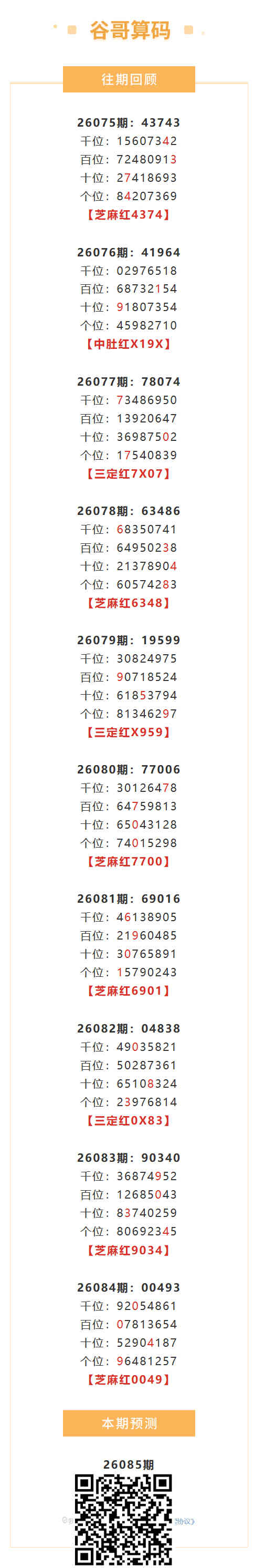 【排列五-26085期】芝麻2连红!本月圈红3次芝麻,芝麻近10红6;上期芝麻红0049