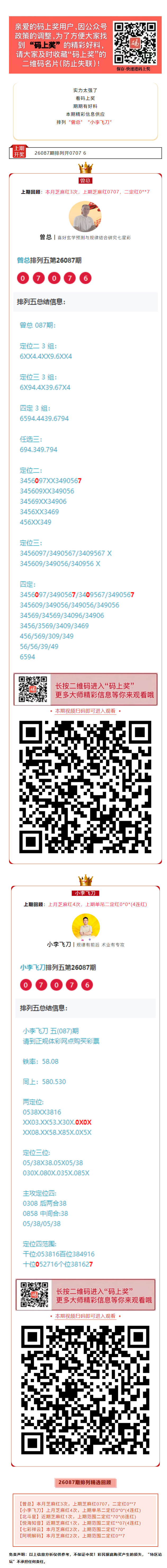 【码上奖】恭喜!排列“曾总”本月芝麻红3次,上期芝麻红0707,二定红0**7!