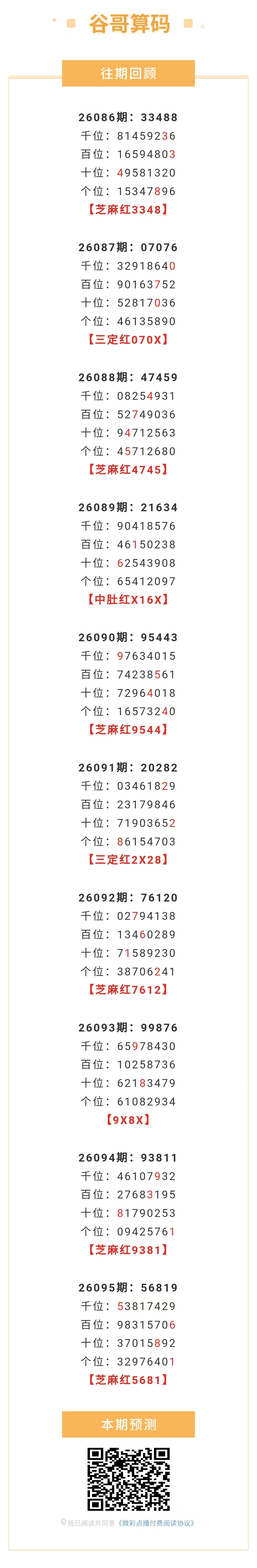 【排列五-26096期】芝麻2连红,本月圈红9次芝麻,芝麻近10红6;上期芝麻红5681