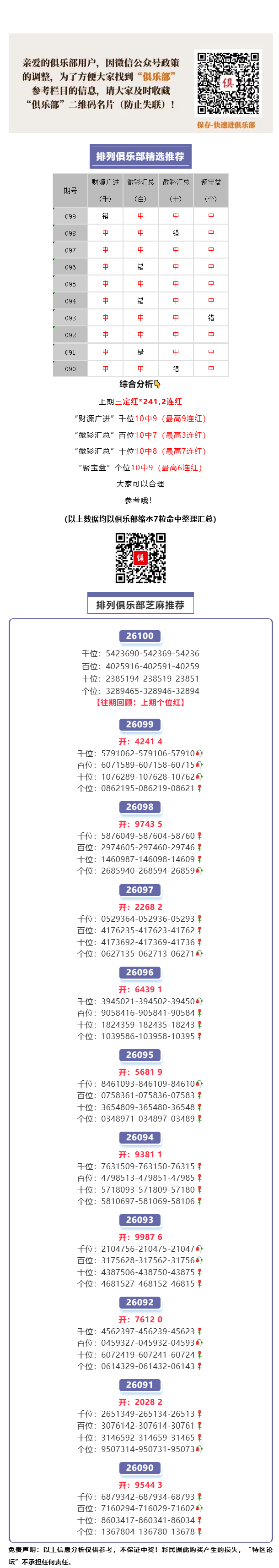 【特区俱乐部】精彩!排列“芝麻推荐”三定红974*,4连红!