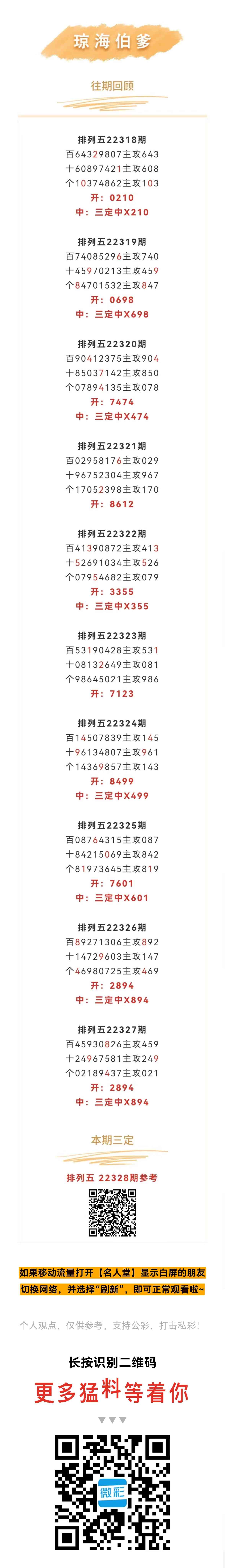 【排列五-328期】本月圈中5次三定,三定近10中8;上期三定中X894