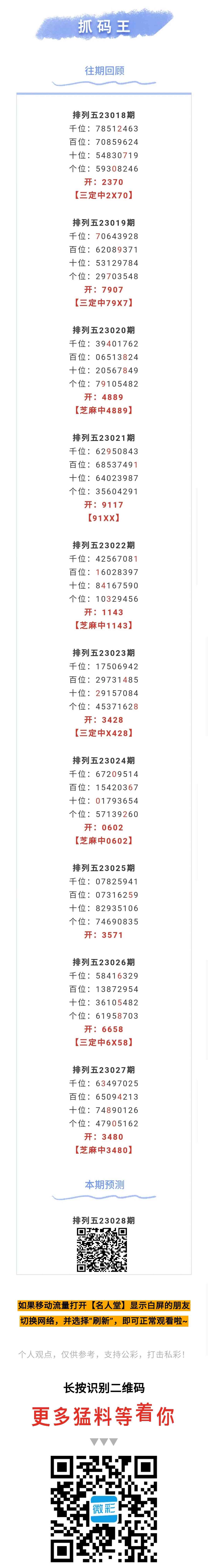 【排列五-028期】上期芝麻中3480,芝麻10中4;本月圈中芝麻3次;本期稳定跟