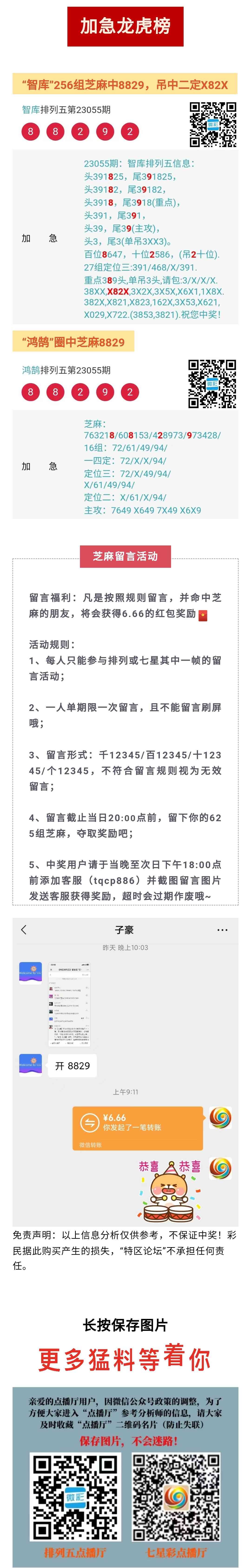 【特区排列五】“隔壁老吴”芝麻2连中;留言区“子豪”625组芝麻中8829!