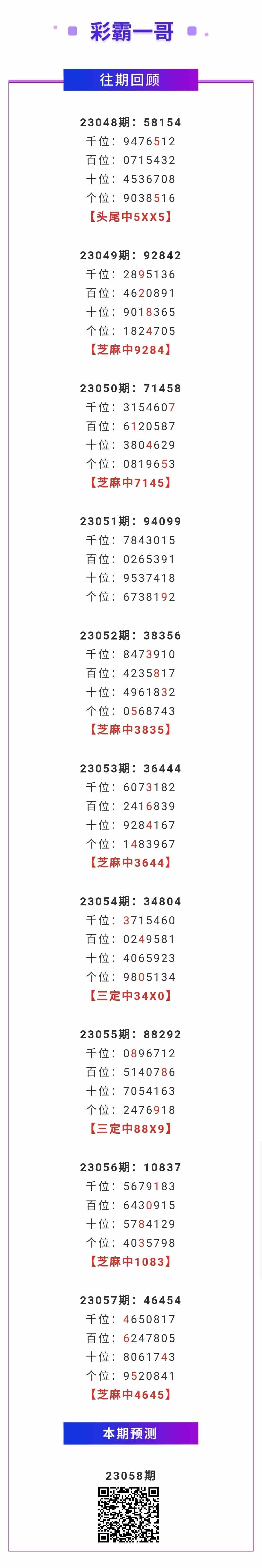 【排列五-058期】2连中!上期芝麻中4645;芝麻近10中6;本月圈中5次芝麻!