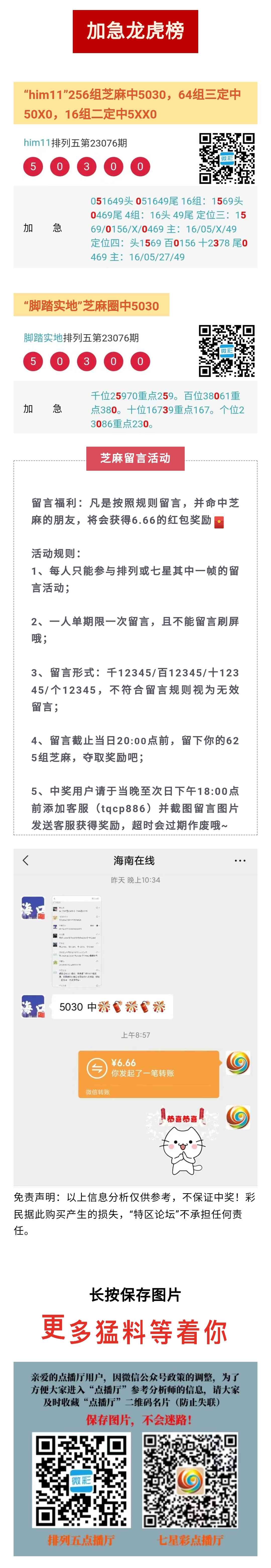 【特区排列五】“小人物”芝麻3连中;“海南在线”大神留言625组芝麻中5030!