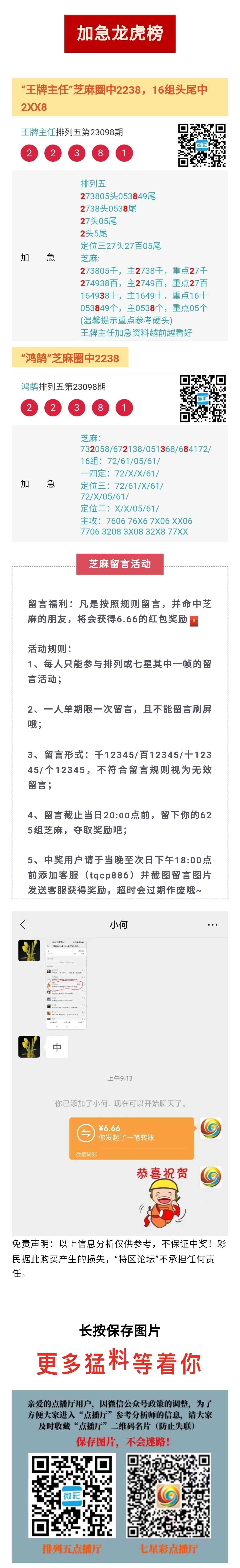 【特区排列五】太棒了!“小人物”芝麻3连中;留言区“小何”625组芝麻中2238!