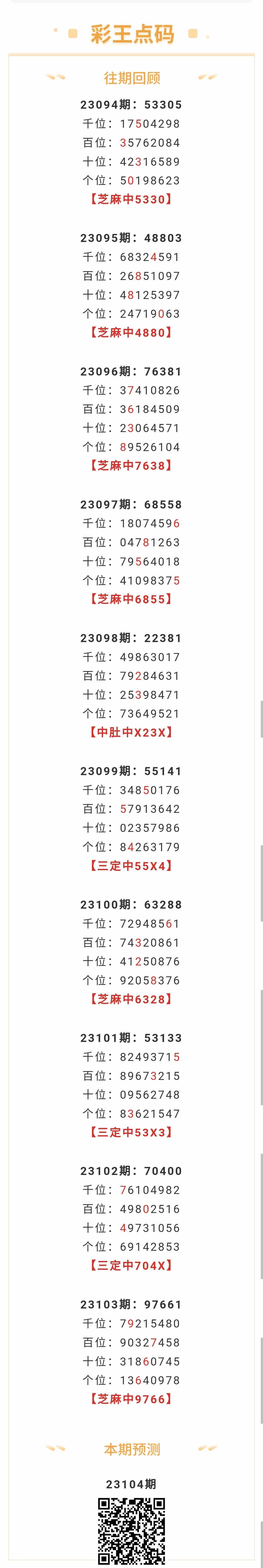 【排列五-23104期】本月圈中10次芝麻,芝麻近10中6;上期芝麻中9766