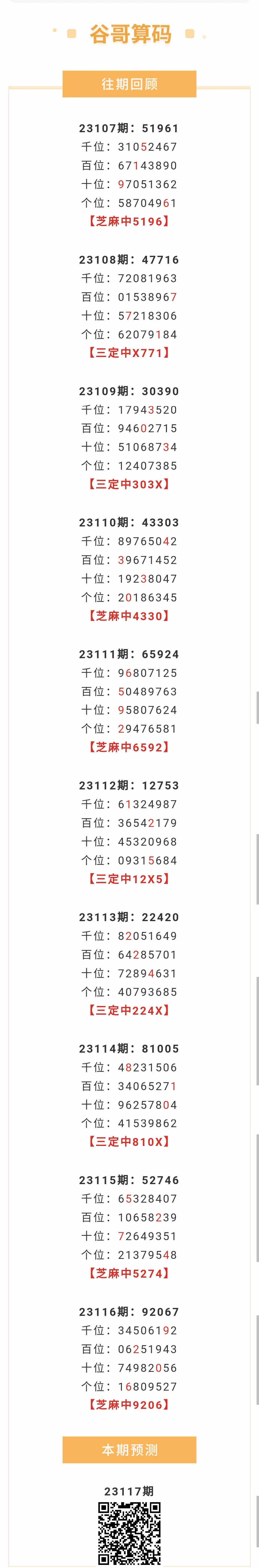 【排列五-117期】本月圈中3次芝麻,芝麻近10中5;上期芝麻中9206