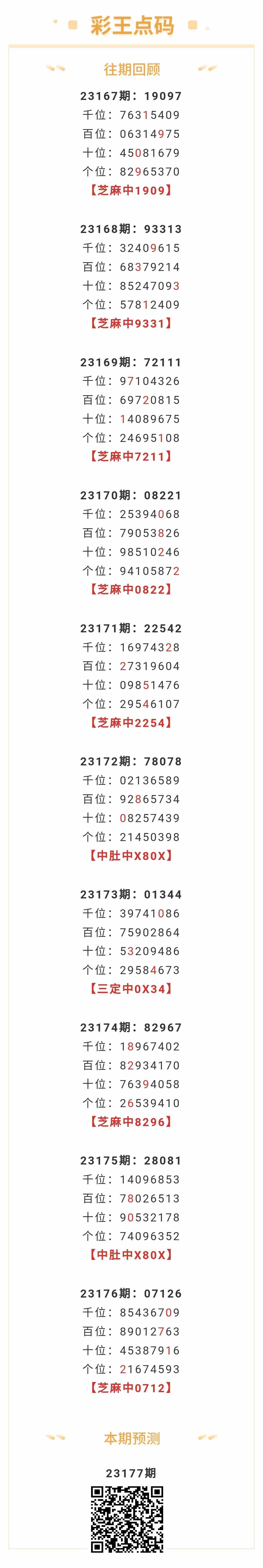 【排列五-177期】上期芝麻中0712;芝麻近10中7;本月圈中2次芝麻