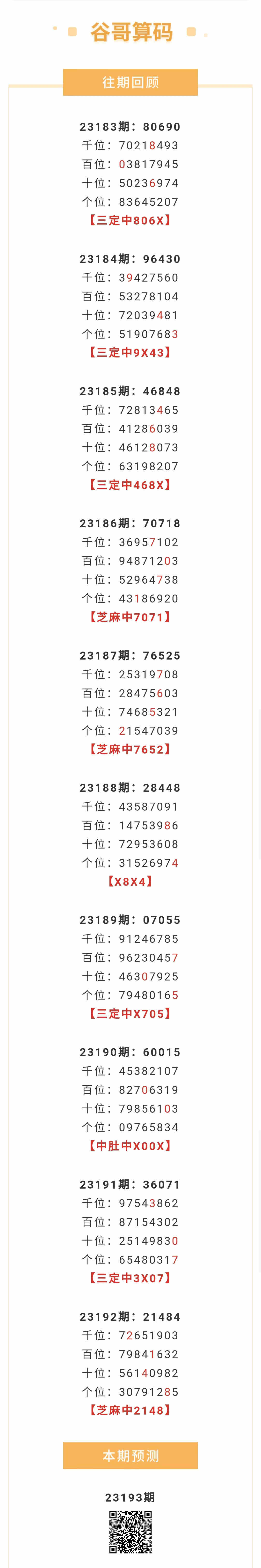【排列五-193期】本月圈中8次芝麻,芝麻近10中3;上期芝麻中2148