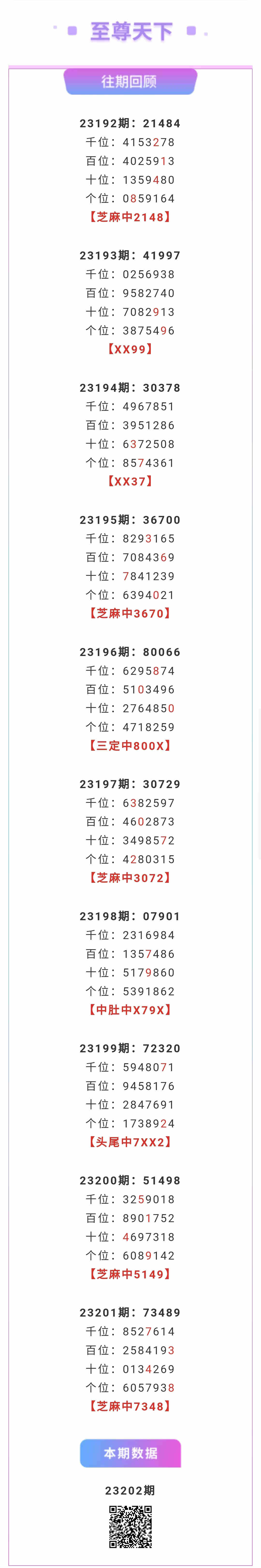 【排列五-23202期】本月圈中9次芝麻,芝麻近10中5;上期芝麻中7348