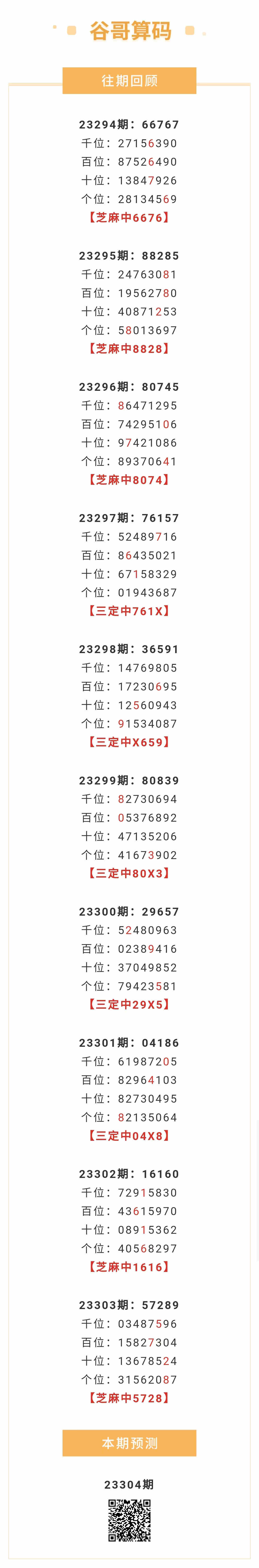 【排列五-23304期】本月圈中8次芝麻,芝麻近10中5;上期芝麻中5728