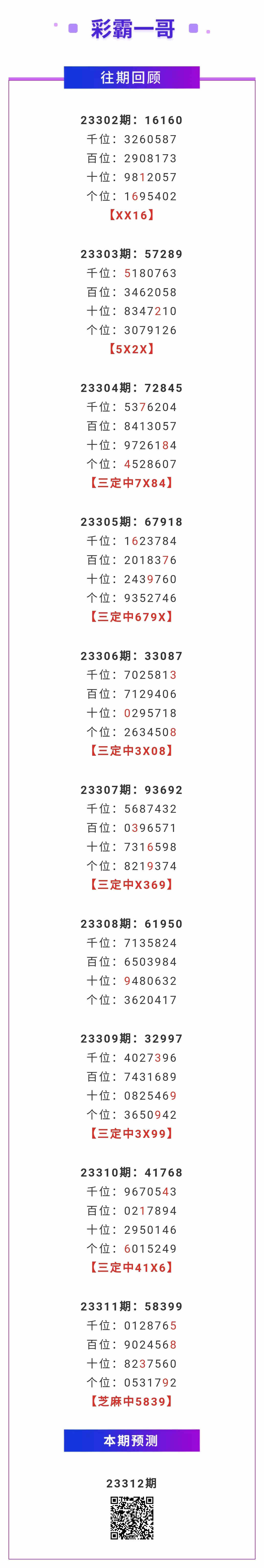 【排列五-23312期】本月圈中6次芝麻,芝麻近10中1;上期芝麻中5839
