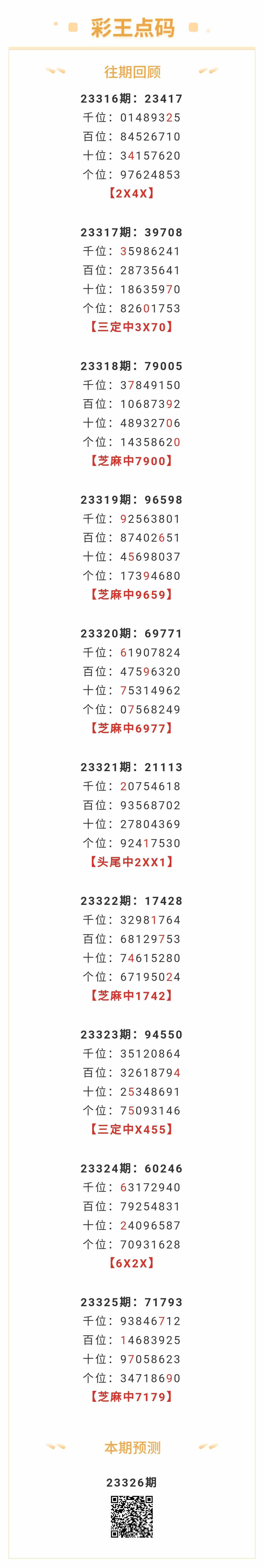 【排列五-23326期】本月圈中2次芝麻,芝麻近10中5;上期芝麻中7179