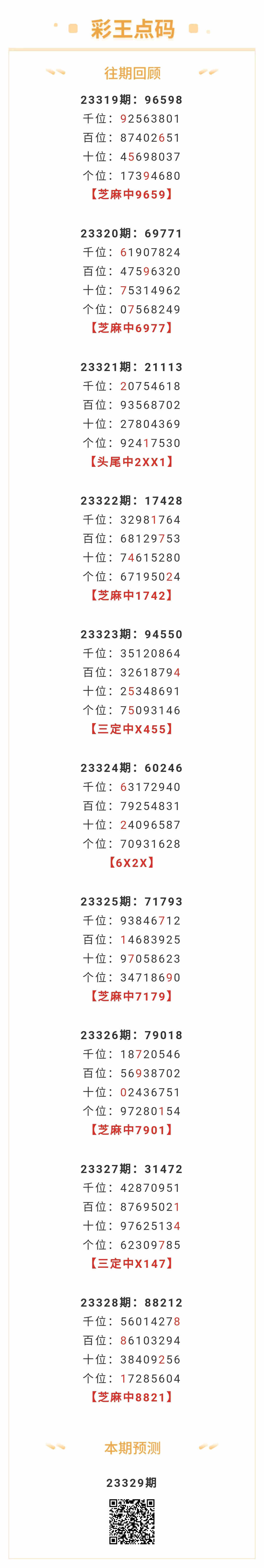 【排列五-23329期】本月圈中4次芝麻,芝麻近10中6;上期芝麻中8821
