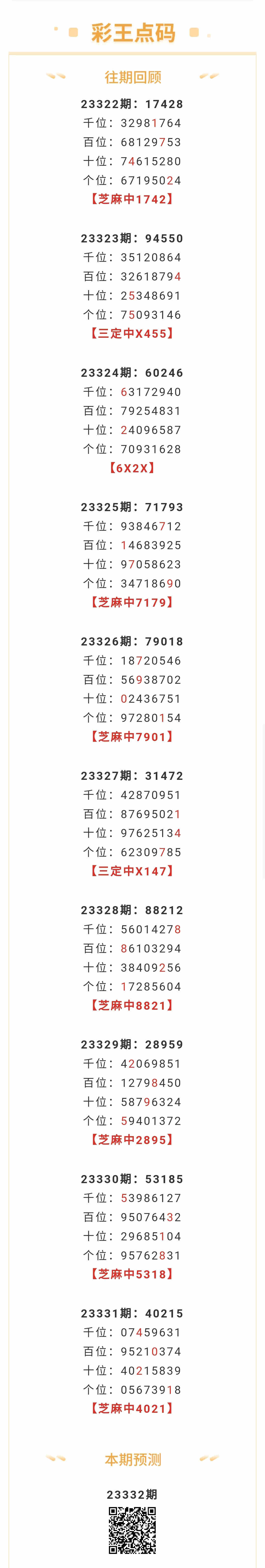 【排列五-23332期】本月圈中7次芝麻,芝麻近10中7;上期芝麻中4021