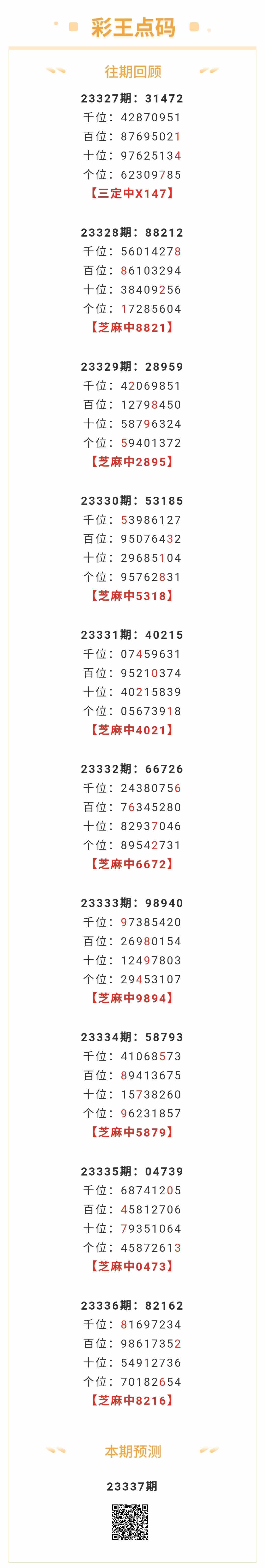 【排列五-23337期】本月圈中12次芝麻,芝麻近10中9;上期芝麻中8216