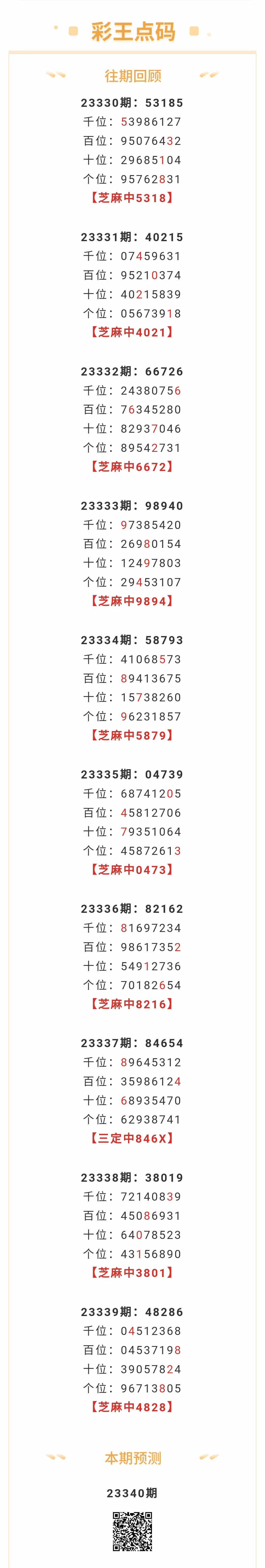 【排列五-23340期】本月圈中14次芝麻,芝麻近10中9;上期芝麻中4828