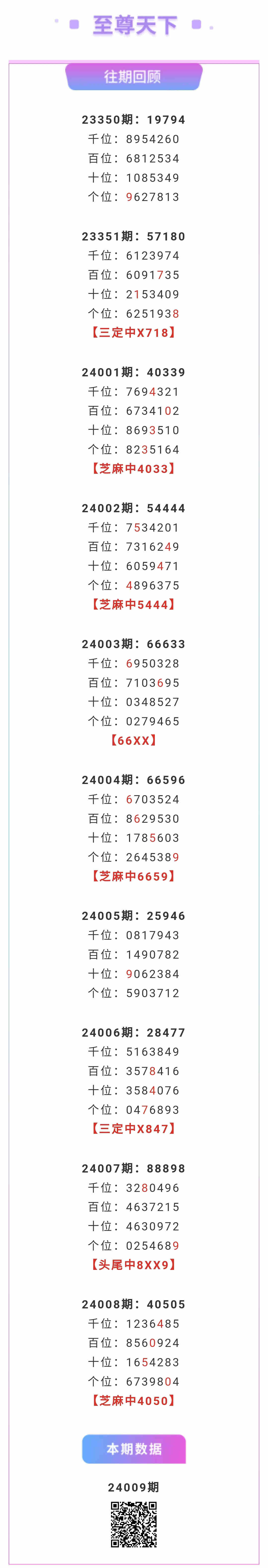 【排列五-24009期】本月圈中4次芝麻,芝麻近10中4;上期芝麻中4050