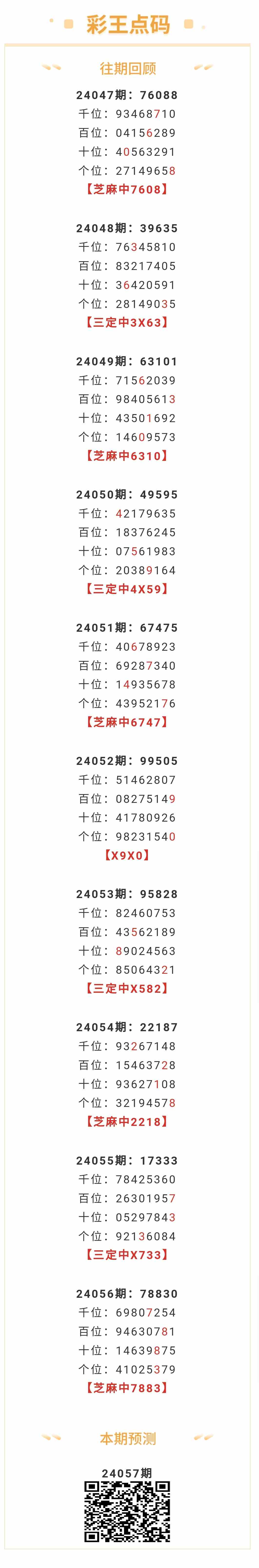 【排列五-24057期】本月圈中3次芝麻,芝麻近10中5;上期芝麻中7883