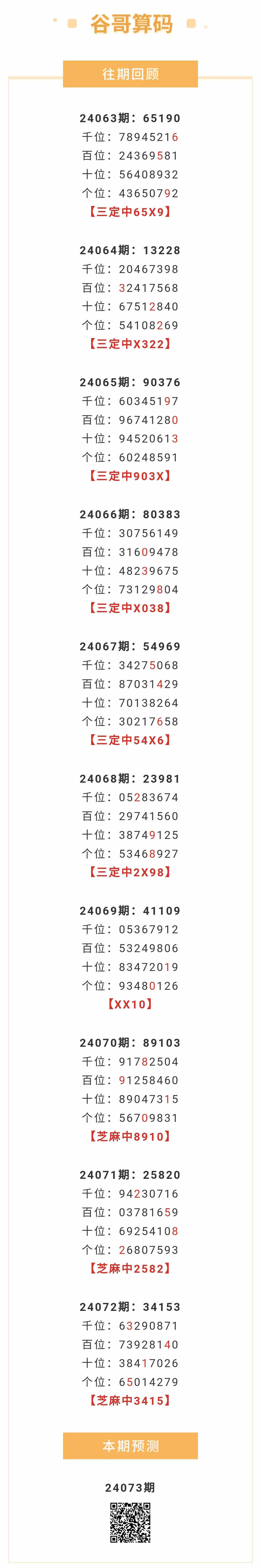 【排列五-24073期】本月圈中8次芝麻,芝麻近10中3;上期芝麻中3415
