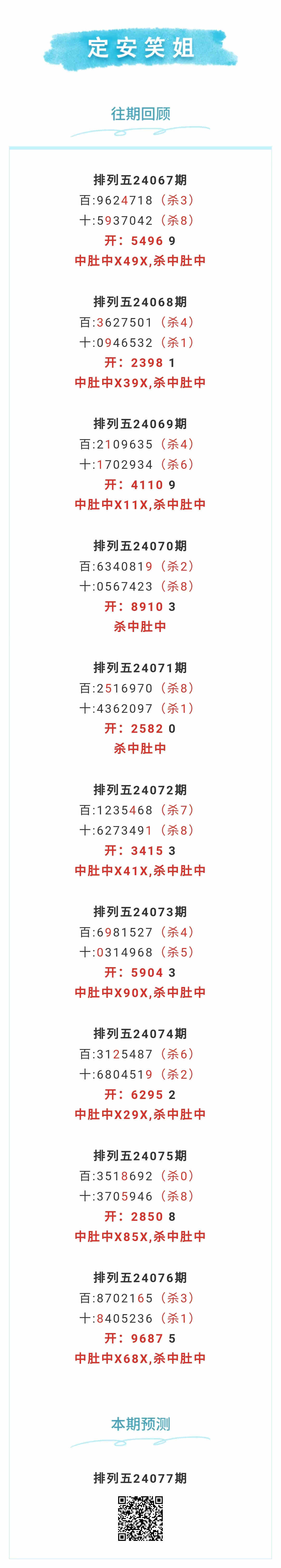 【排列五-24077期】本月圈中18次中肚,中肚近10中8;上期中肚中X68X,杀中肚中