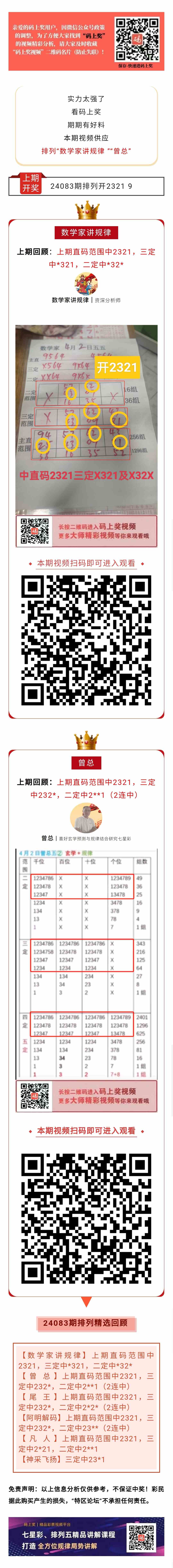 【码上奖视频】排列“数学家讲规律”等5位大师直码范围圈中2321!