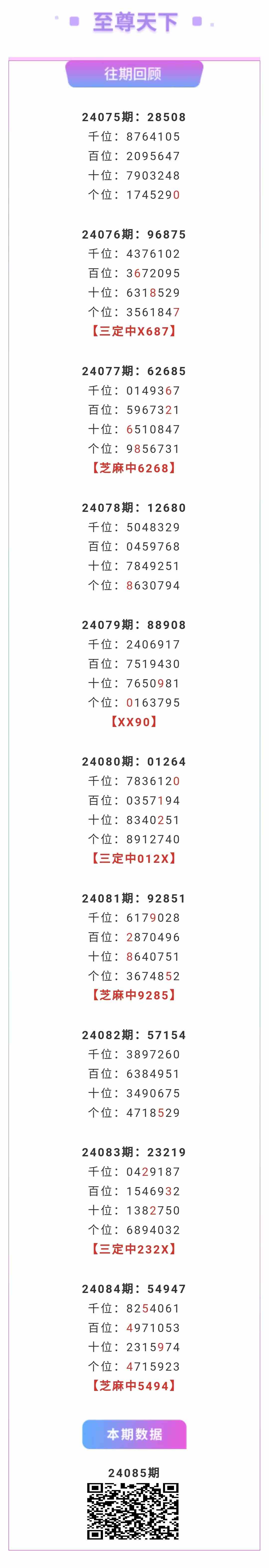 【排列五-24085期】本月圈中1次芝麻,芝麻近10中3;上期芝麻中5494