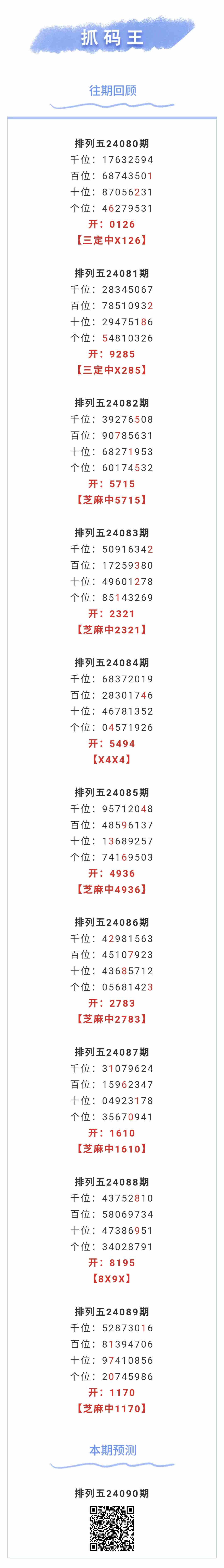 【排列五-24090期】本月圈中6次芝麻,芝麻近10中6;上期芝麻中1170