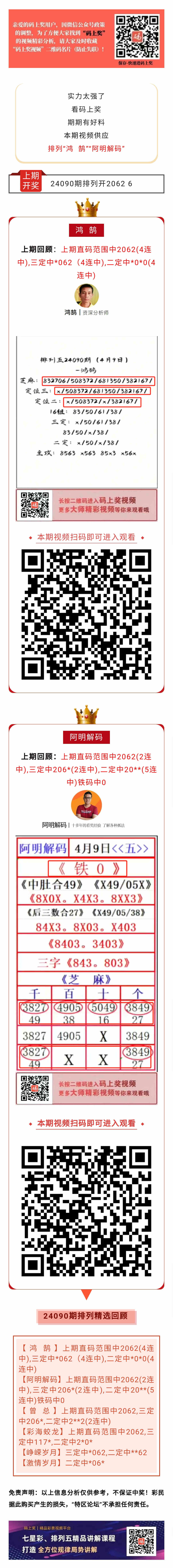 【码上奖视频】排列“鸿 鹄”上期直码范围中2062,4连中!