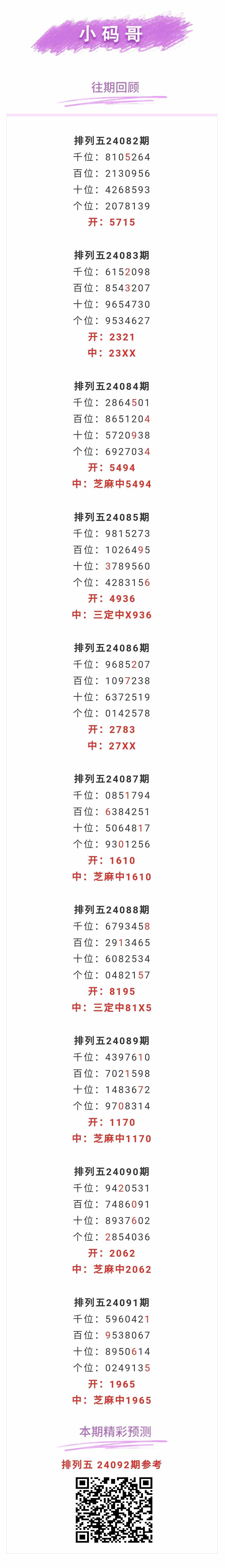【排列五-24092期】本月圈中5次芝麻,芝麻近10中5;上期芝麻中1965