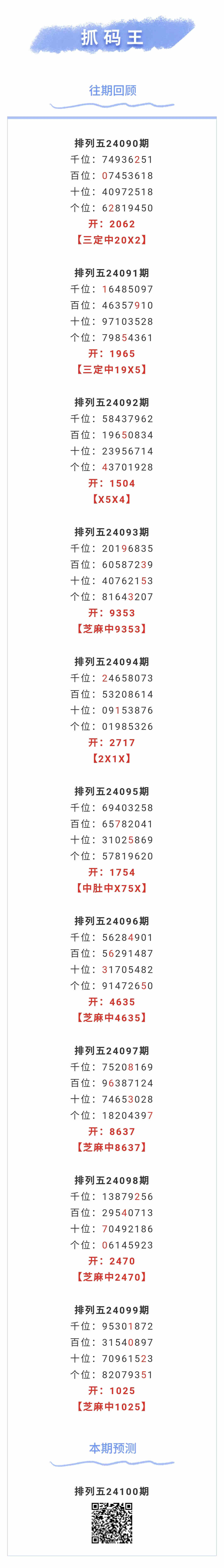 【排列五-24100期】本月圈中11次芝麻,芝麻近10中5;上期芝麻中1025