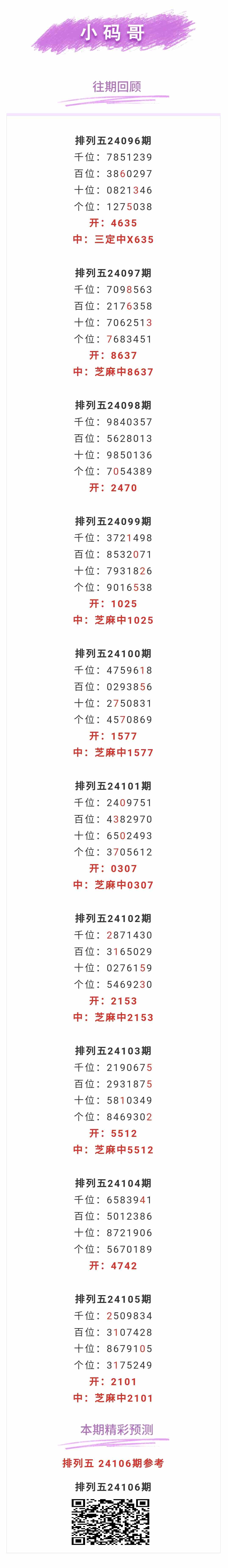 【排列五-24106期】本月圈中13次芝麻,芝麻近10中7;上期芝麻中2101