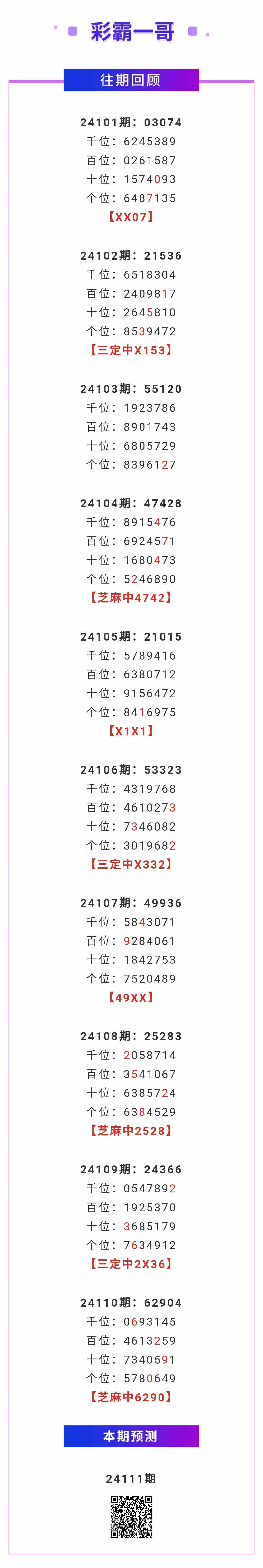 【排列五-24111期】本月圈中9次芝麻,芝麻近10中3;上期芝麻中6290