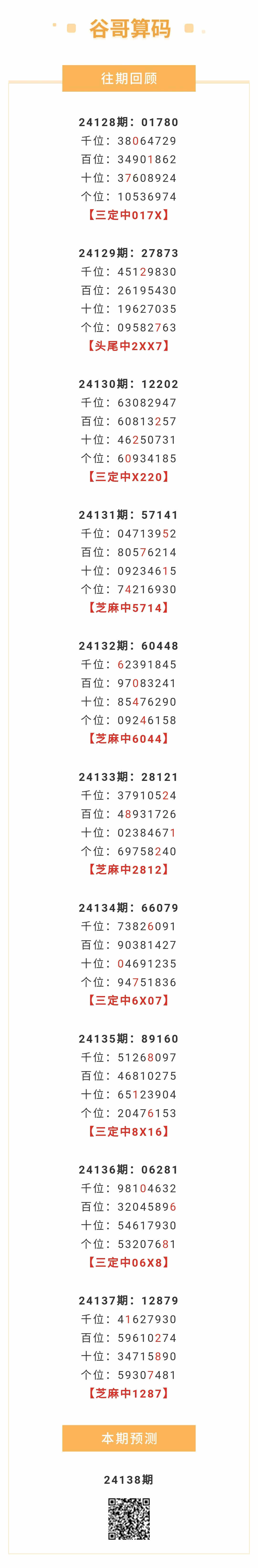 【排列五-24138期】本月圈中10次芝麻,芝麻近10中4;上期芝麻中1287