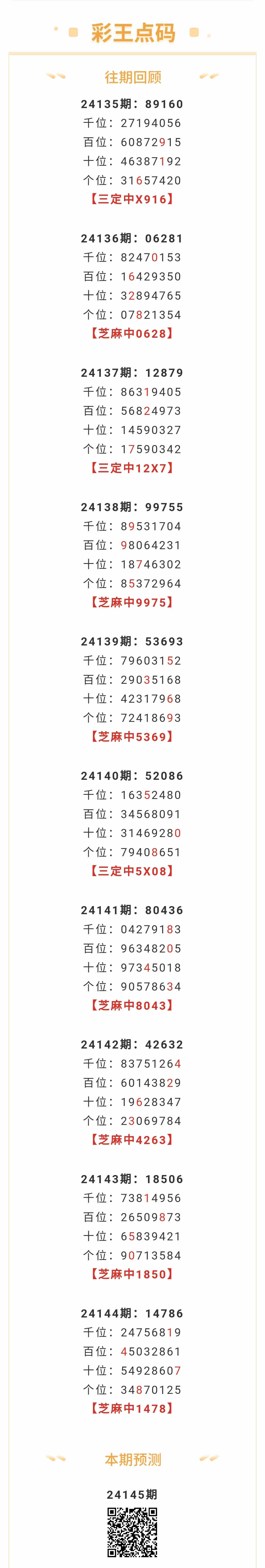 【排列五-24145期】本月圈中3次芝麻,芝麻近10中7;上期芝麻中1478